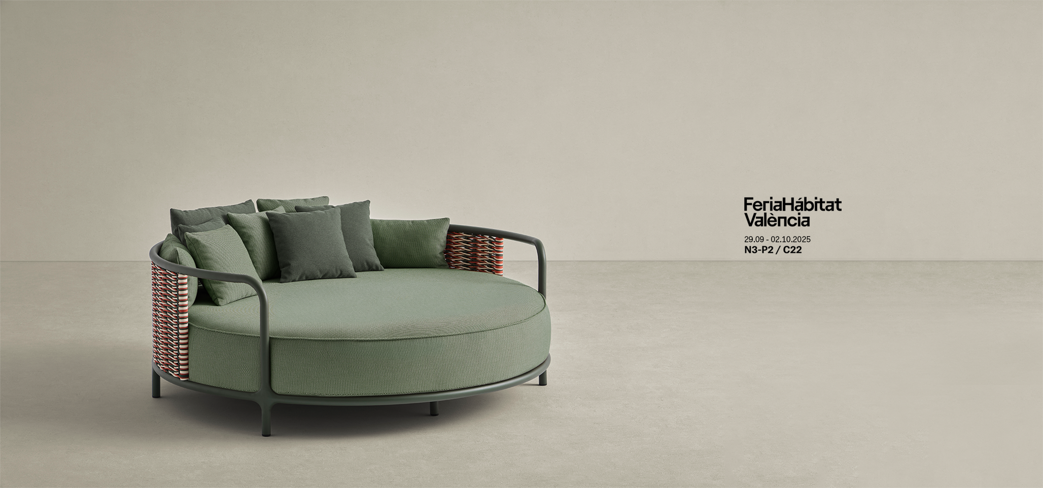 With contemporary furniture of pure designs, integrated into nature, handcrafted with weather-resistant materials and with the ergonomic lines demanded by moments of relaxation for hospitality and contract.